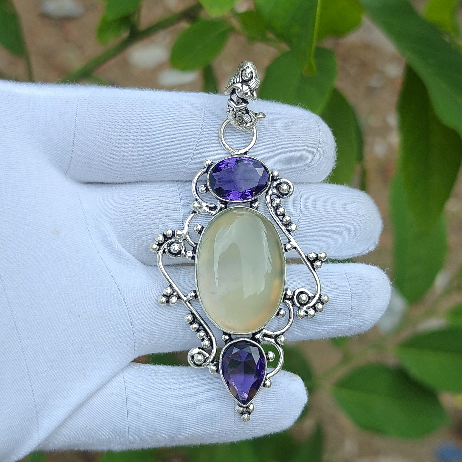 Green Chalcedony & Amethyst Pendant Handmade Pendant 925 Sterling Silver Jewelry Healing Jewelry Gemstone Jewelry Christmas Gifts....