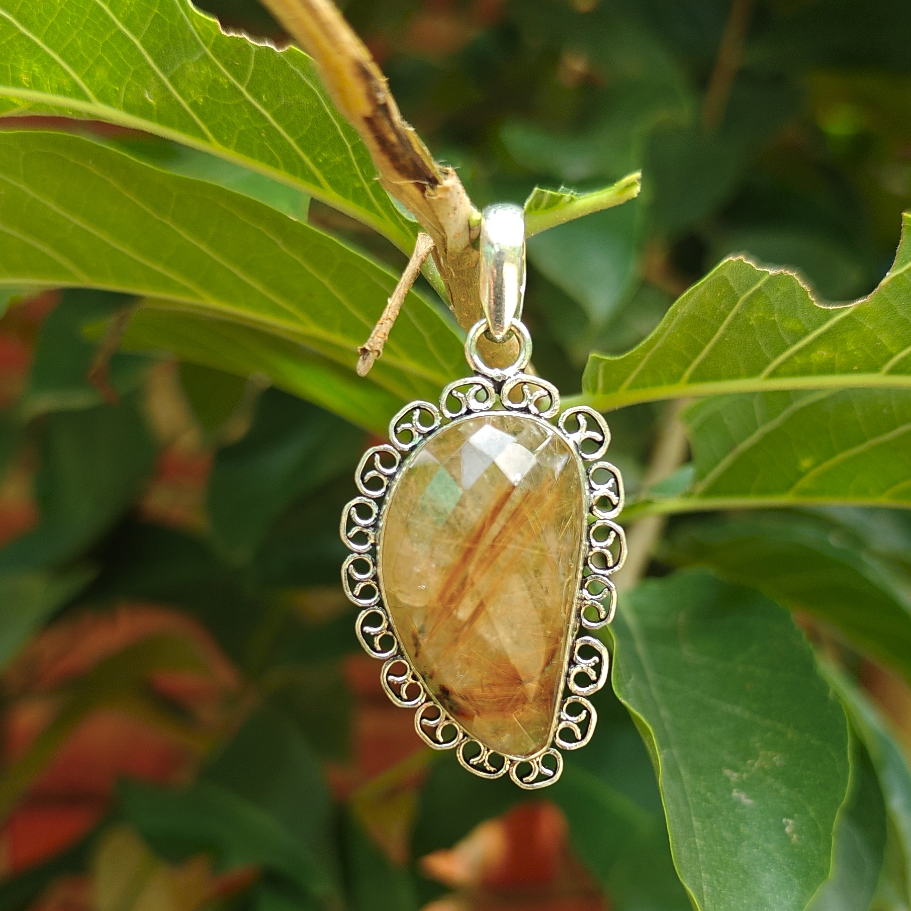 Original price was: ₹2,000.00.₹1,000.00Current price is: ₹1,000.00.Golden Rutile Sterling Silver Pendant: Handmade Gemstone Jewelry