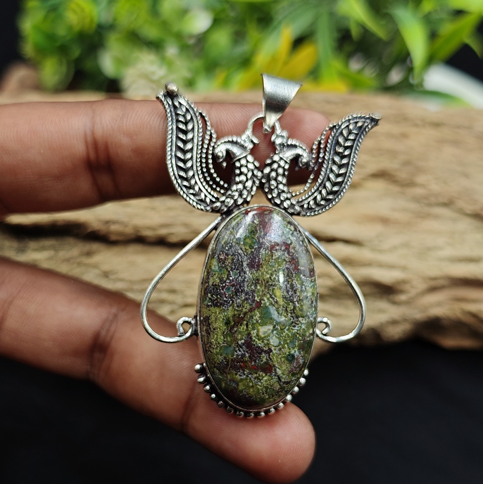 Original price was: ₹2,000.00.₹1,000.00Current price is: ₹1,000.00.Dragon Jasper Gemstone Pendant 925 Sterling Silver, Adjustable Gemstone Pendant